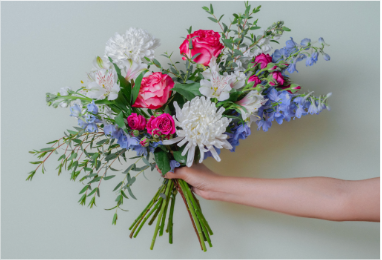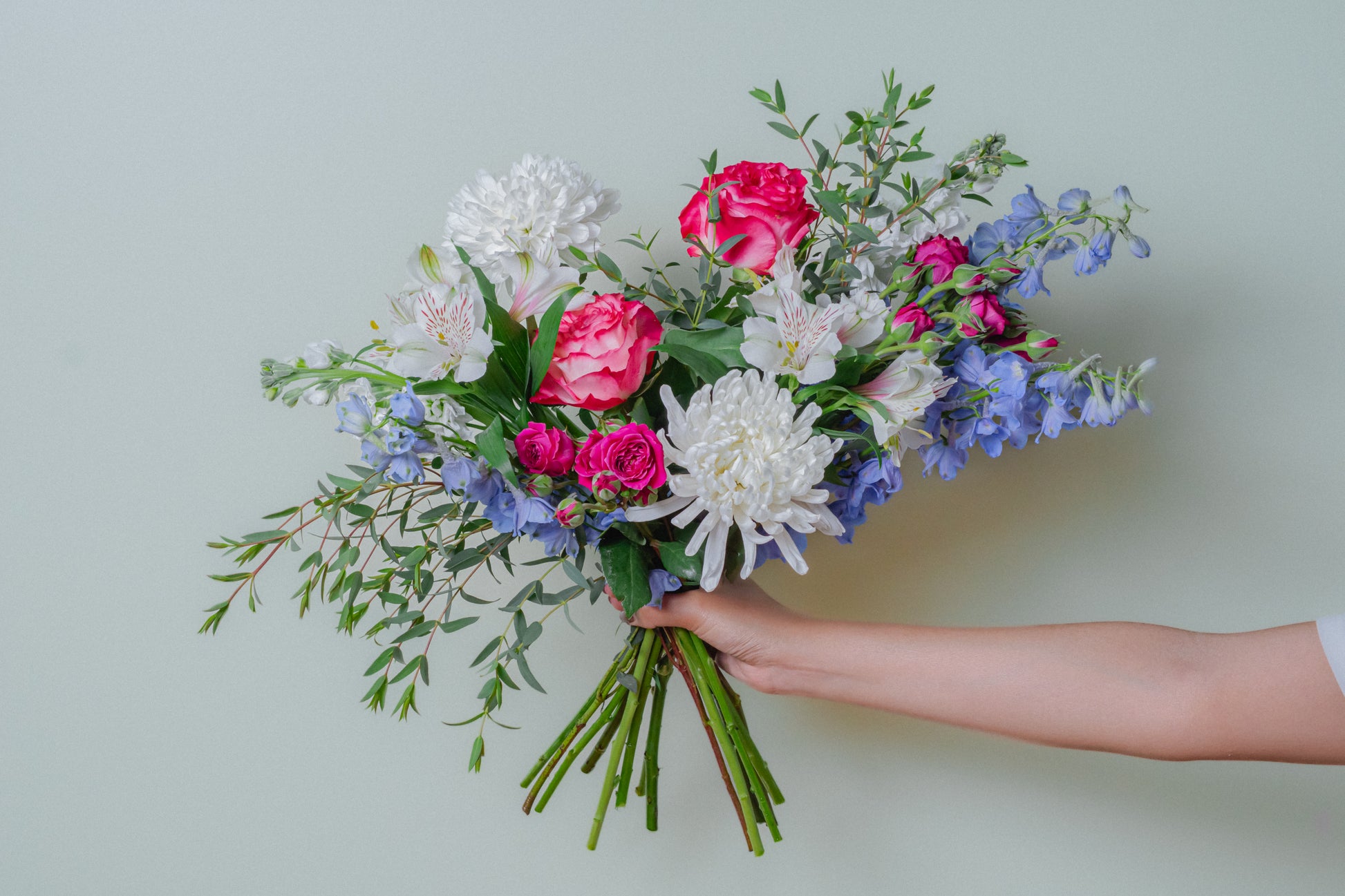 A bold mix of crisp whites, vivid reds, and cool blues, gathered with fresh greenery for a strong, balanced look. Bright, classic, and full of character—USA statement without trying too hard.